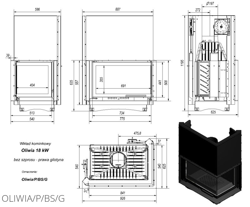 Каминная топка Kratki Oliwia/P/BS/G (Г-образное стекло справа, гильотина) для угловых либо пристенных каминов. Особенно оригинально топка будет выглядеть в комплекте с угловыми каминами. Мощность прибора высокая, достигающая 18 кВт, что позволяет отапливать большие жилые пространства.
