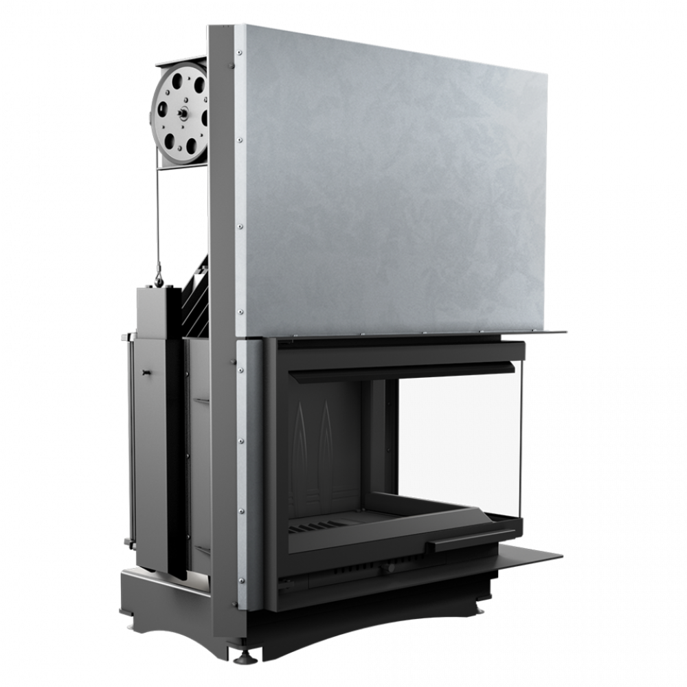 • Двойная система открывания дверец вверх (гильотина) и в сторону. Дверцы, что поднимаются и опускаются, облегчают наполнение древесиной, а механизм, который позволяет боковое открывание, позволяет очистить стекло более эффективно.