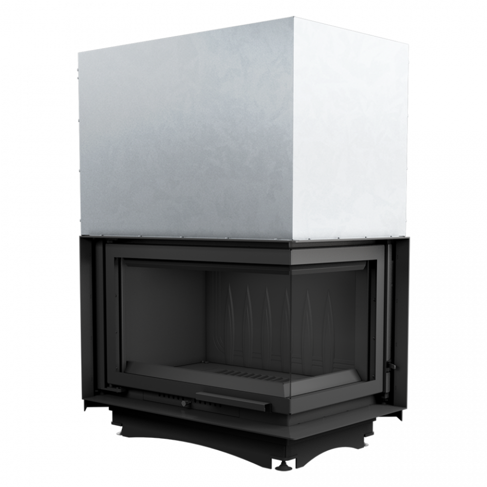 • Каминная топка с двумя стеклянными панелями, сопоставленными друг напротив друга под прямым углом (стеклянные панели соединены без рамы).