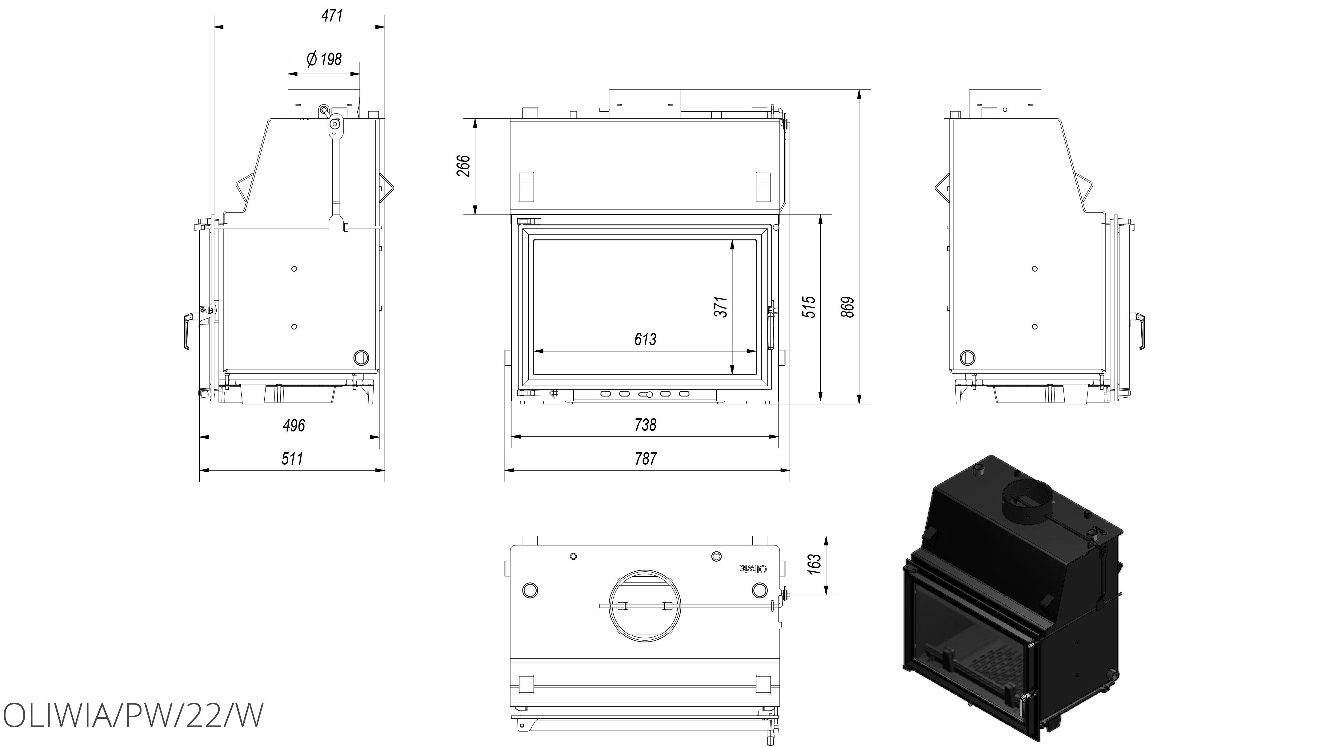 Каминная топка Kratki Oliwia/PW/22/W с водяным контуром, в которой используемые технологии и материалы создают эффективную, экономичную и экологическую топку с высокой эффективностью.