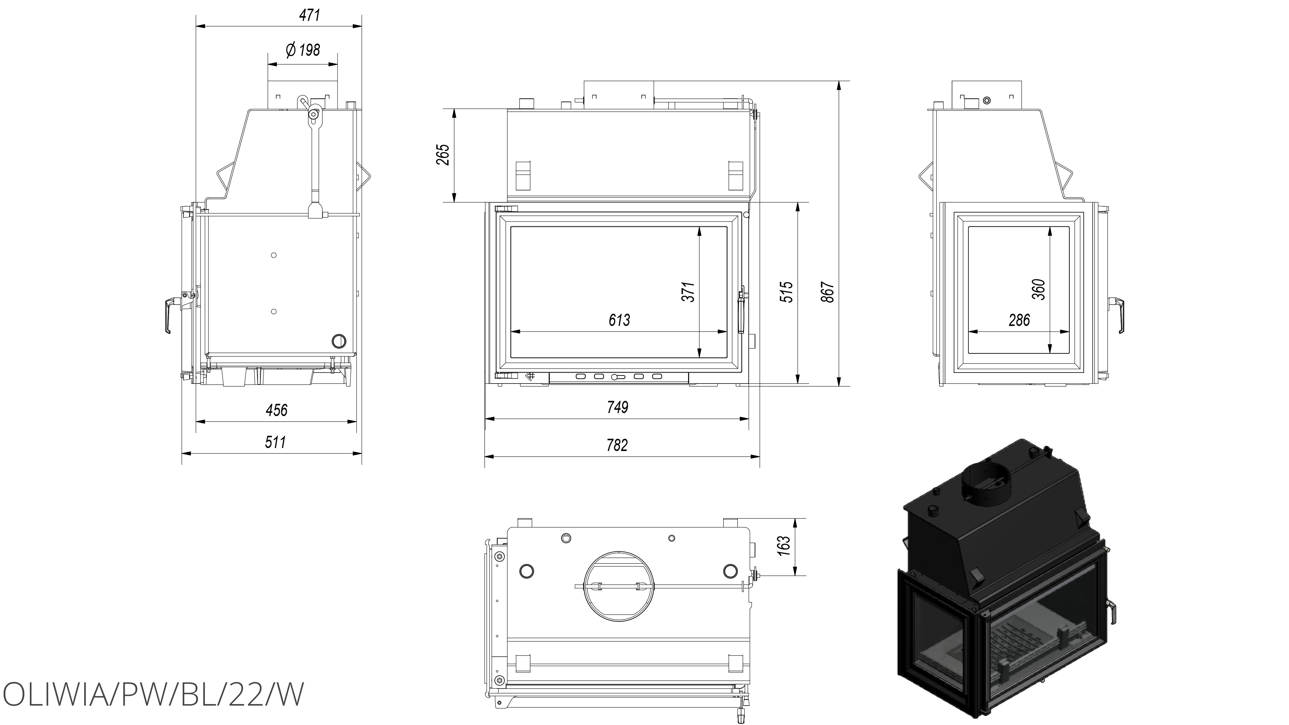 Каминная топка Kratki Oliwia/PW/BL/22/W