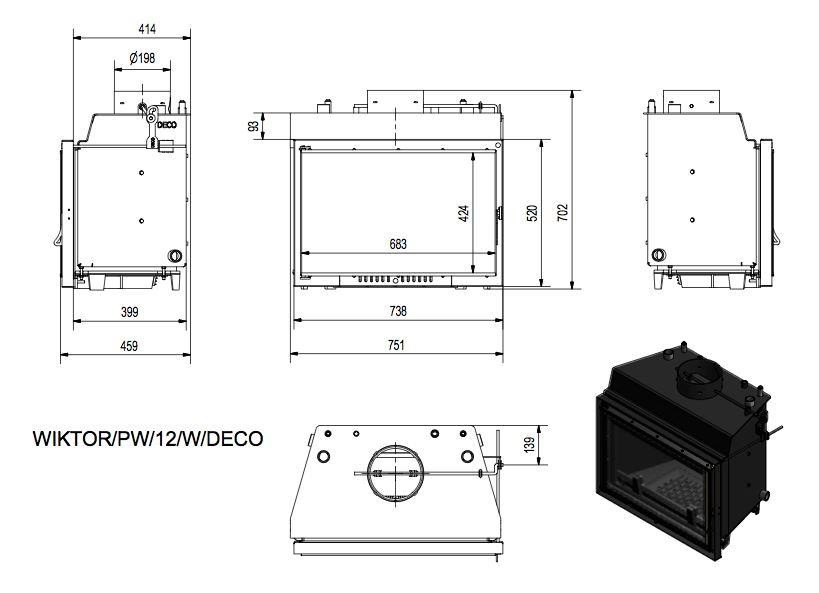 Каминная топка Kratki Wiktor/PW/12/W/Deco