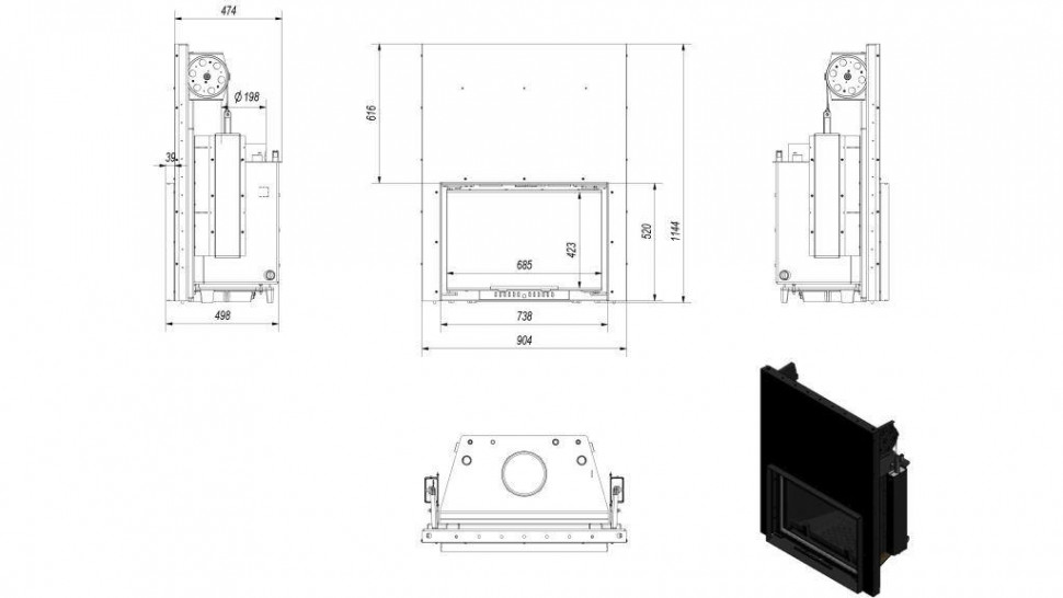 - Удобная скрытая ручка на дверце топки.