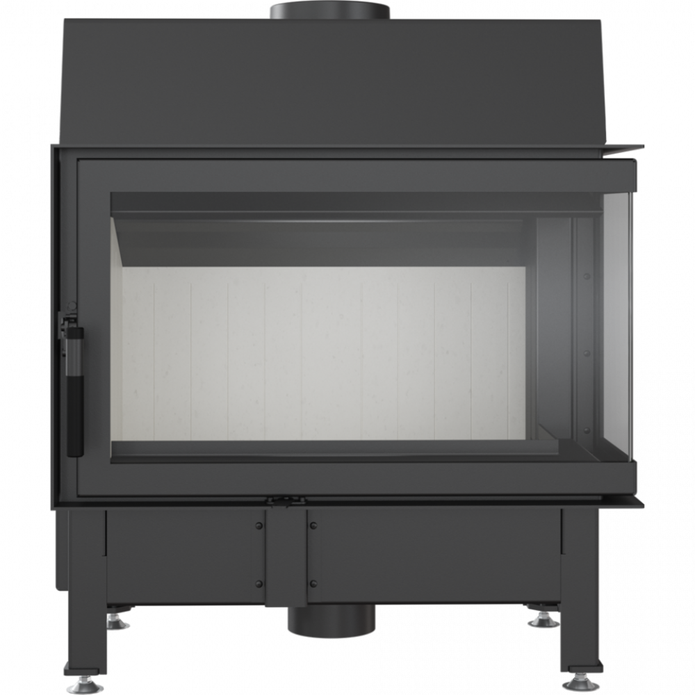 Стальная каминная топка Kratki Zibi/P/BS (Г-образное стекло справа) с современной панорамной передней стороной, что делает ее более широкой, чем есть на самом деле.