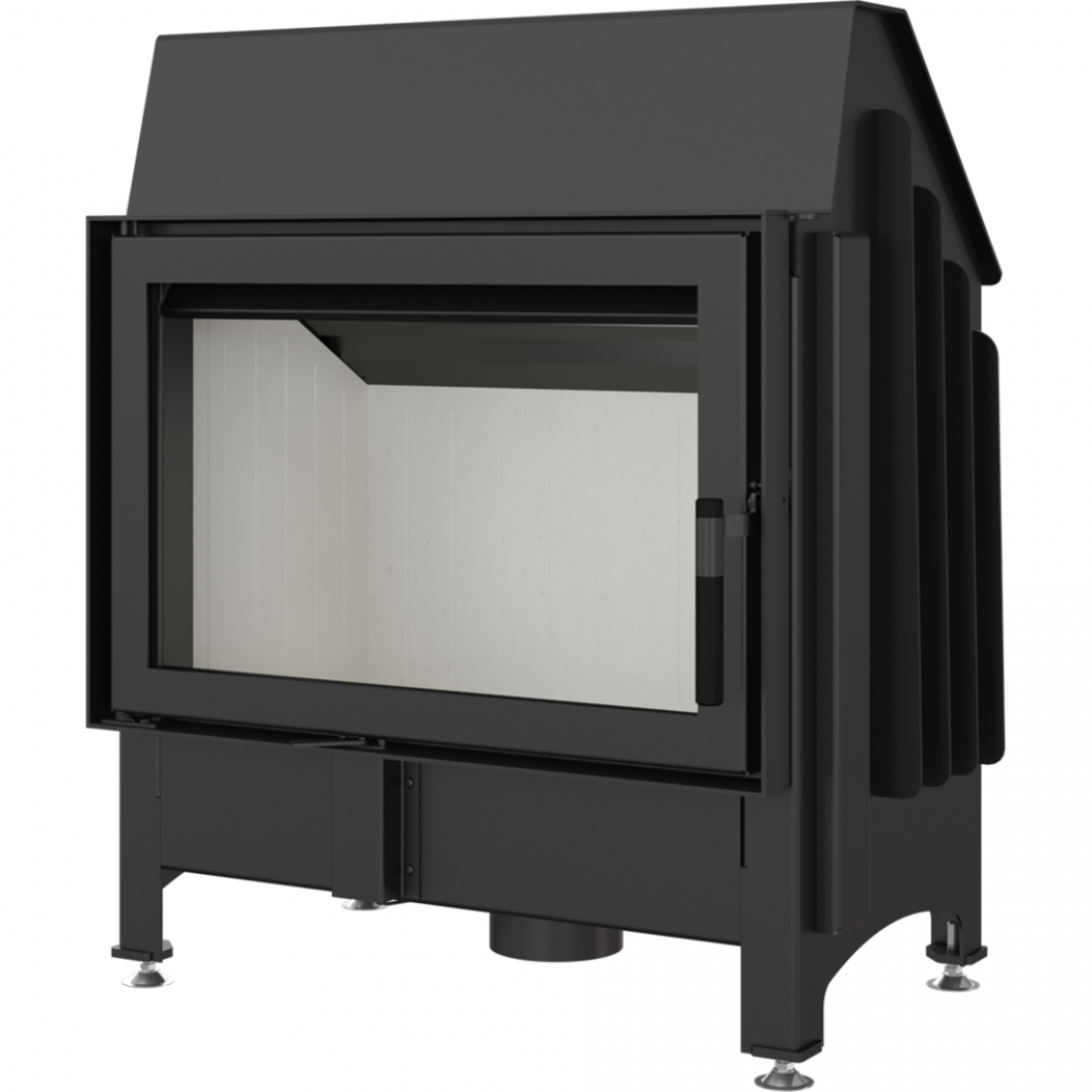 Стальная каминная топка Kratki Zibi (без колосника) с современной панорамной передней стороной, что делает ее более широкой, чем есть на самом деле. Преимуществом подового горения является более равномерный процесс горения в камере сгорания, так как воздух в топку подается по всей ширине топки.