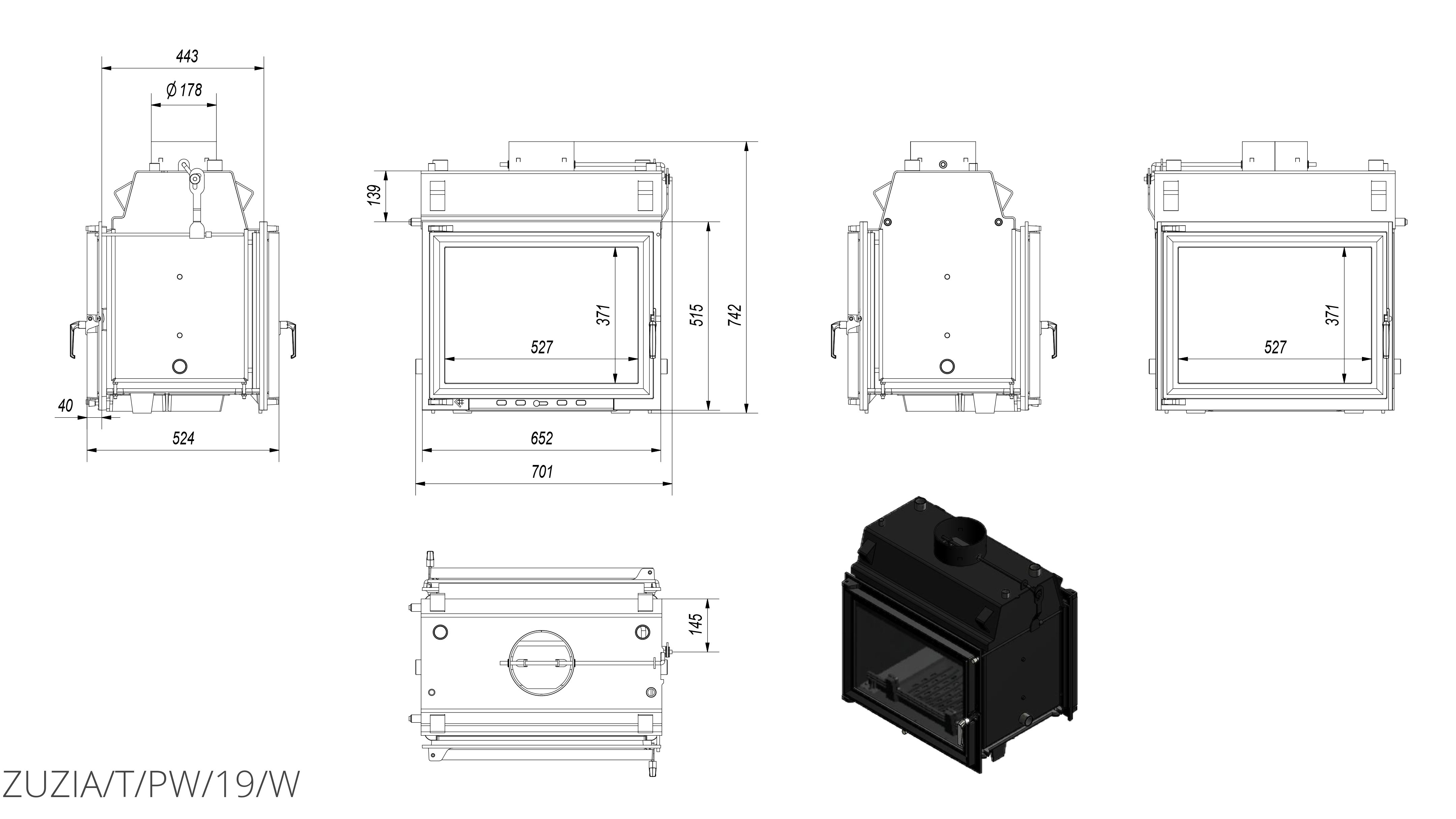 Каминная топка Kratki Zuzia/T/PW/19/W