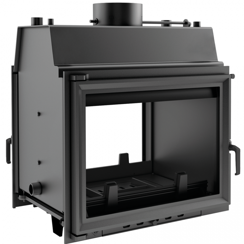 - Увеличена поверхность теплообмена благодаря встроенным водяным дефлекторам и высокому переходу камина в дымоход.