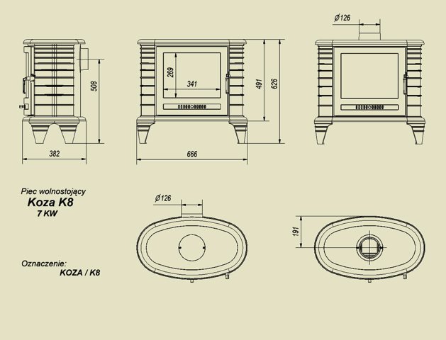 Массивная чугунная топка для загородного дома. Отлита она из серого чугуна. Толщина стенок Koza/K8 составляет 7 мм. Печка имеет необычную овальную форма. Ручка на дверце остается холодной в процессе эксплуатации печи Kratki.