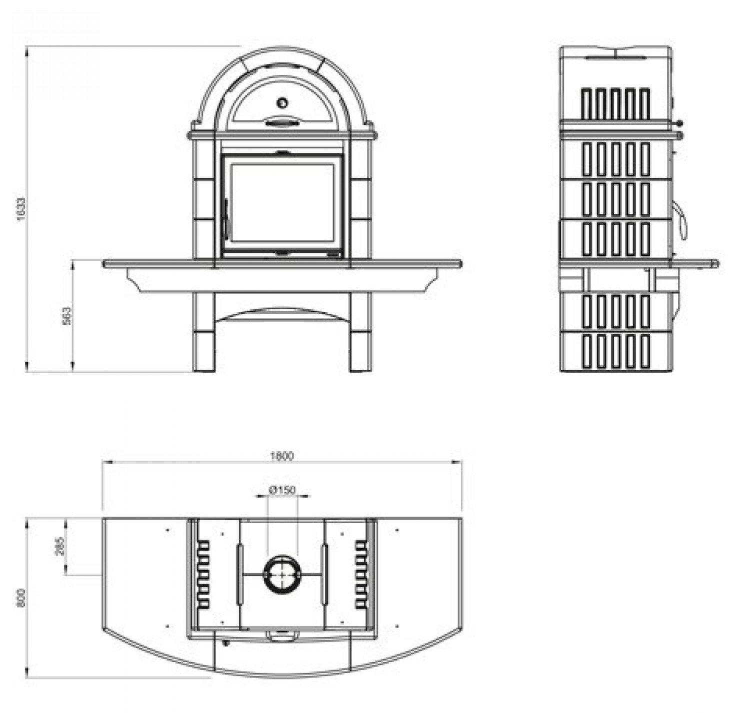 - Диаметр дымохода, (мм) 150 мм.
