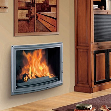 - Панорамная дверь, которая позволяет легко загружать топливо и наслаждаться игрой живого пламени.