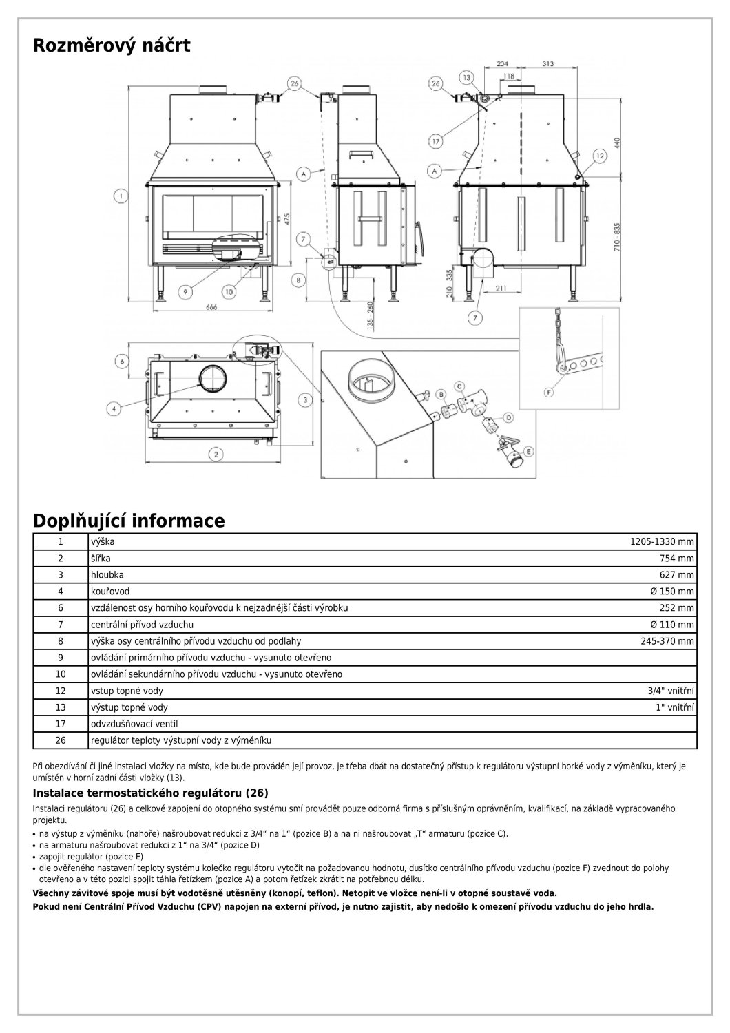 - Диаметр дымохода, (мм) 150