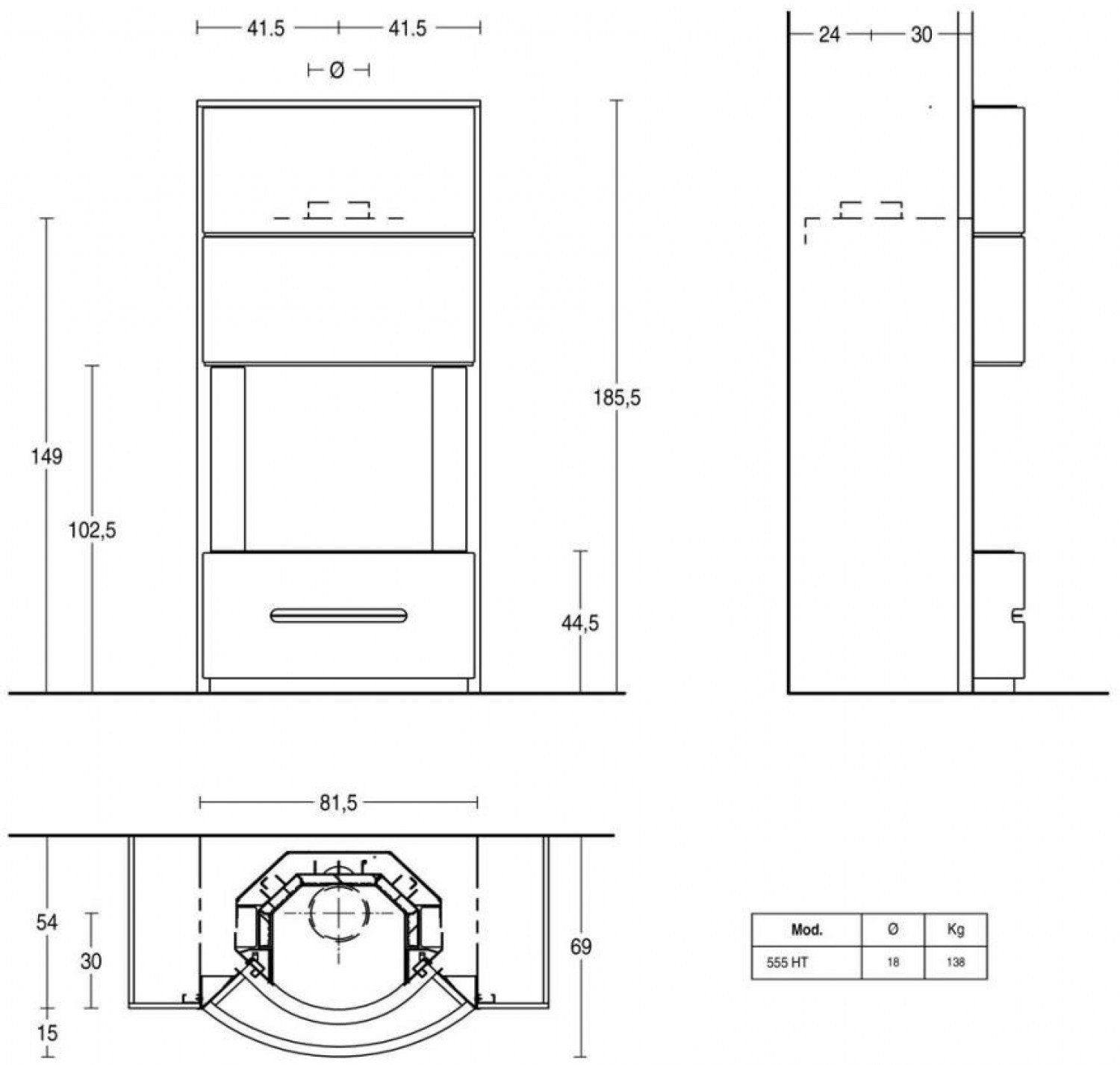 Компактная облицовка с боковыми панелями из майолики и закругленная фронтальная панель с изготовленным вручную декоративным барельефом доступны в широком ассортименте цветов. Cтальная рамка с отделкой из черной эмали (на фотографии изображена версия Terra Cotta, дровяная топка 555T SL с закругленной панелью из керамического стекла).