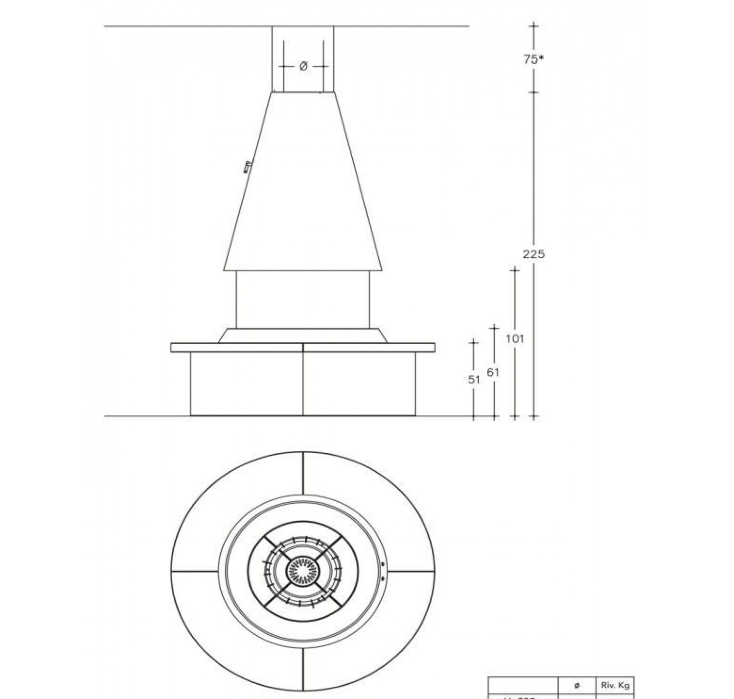 Камин совместим с топками M360 T (цилиндрический или конический кожух).