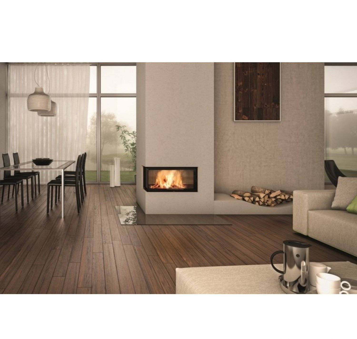 - установка дровяного камина довольно сложна и занимает много времени сама по себе, не говоря уже о попытке вписать такой камин в готовый интерьер; - устройству дымохода следует уделить особое внимание, так как при ошибках в конструкции камин может начать дымить внутрь помещения; - необходимость установки дымохода сильно усложняет процесс размещения камина в городской квартире, особенно, если квартира располагается не на последнем этаже; - необходимо заранее продумать, где будут храниться дрова; - нужно помнить, что при использовании для топки дров потребуется постоянная чистка дымохода от золы;