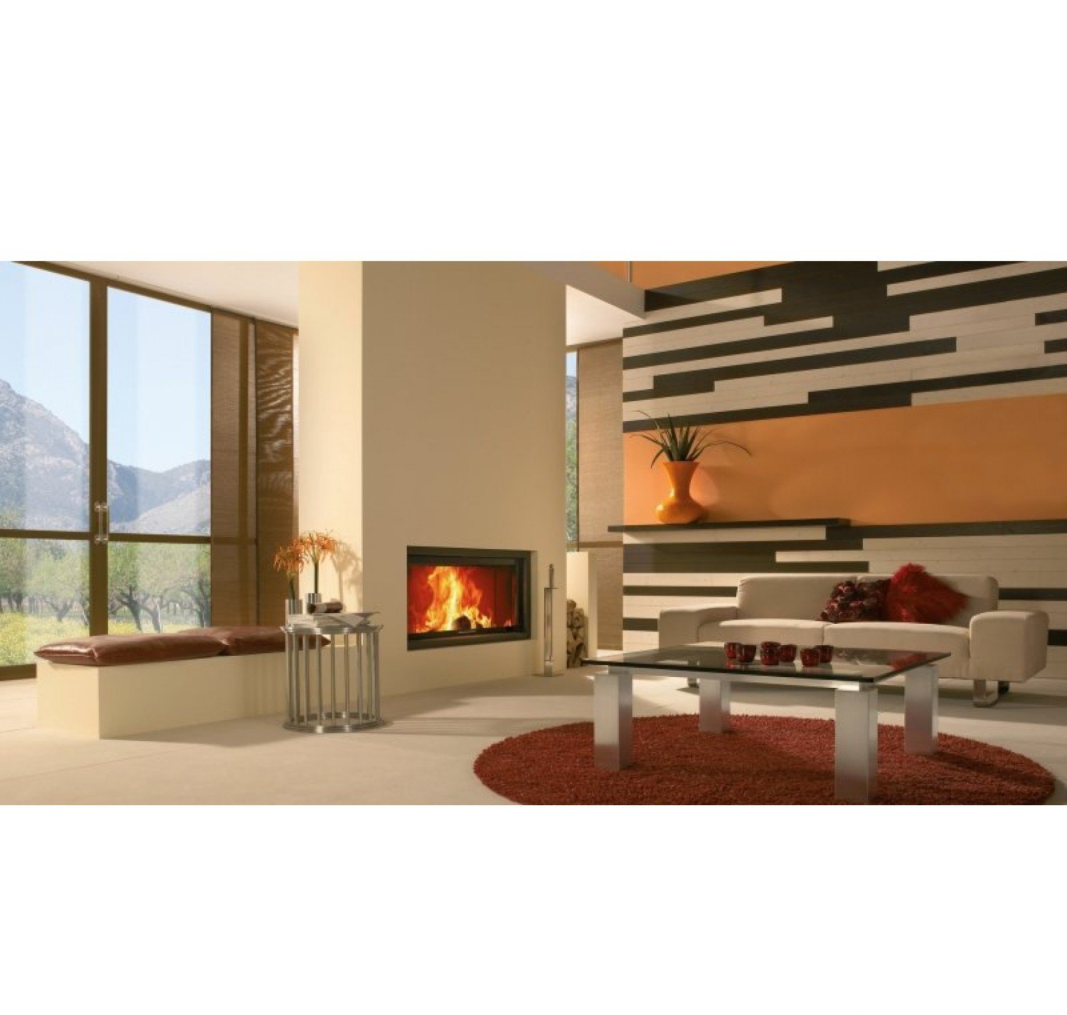 Каминная топка Spartherm Varia B120h 4s обладает отличными пропорциями и современным дизайном фасада.Заключенное в тонкую рамку стекло имеет темную тонировку по всему периметру каминной дверки. Стационарная дверная ручка из хромированного металла расположена в нижней части фасада.Она используется для лифтового поднятия дверки.Открытие фасада вперед под углом 45 градусов осуществляется с помощью съемной ручки-замка, входящей в комплектацию к топке.