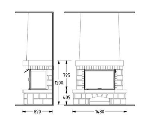 Цена указана за камин в стандартном исполнении (см. чертеж) из указанных материалов без топки.