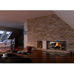 Топка Lateral 900 выполнена из легированной стали.Ширина очага 770 мм, глубина очага 390 мм. Высота видимой части пламени 564 мм. Очаг выложен кирпичными блоками со швами. Размер блока 110х220 мм. Подъемная ручка двери прямая 12 см.