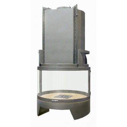 Топка предназначена для установки только в центре комнаты, оснащена подъемным механизмом, с помощью него все стекла поднимаются вверх. Две противоположных стекла открываются вбок для удобства чистки камина. Корпус топки выполнен из легированной стали. Для установки топки необходимо дополнительно заказывать систему подвешивания. В зависимости от ситуации установки необходимо выбрать подходящий вариант подвешивания топки исходя из высоты помещения и верхней фиксации крепления. Очаговая зона основания выложена высокопрочным огнеупорным кирпичом.