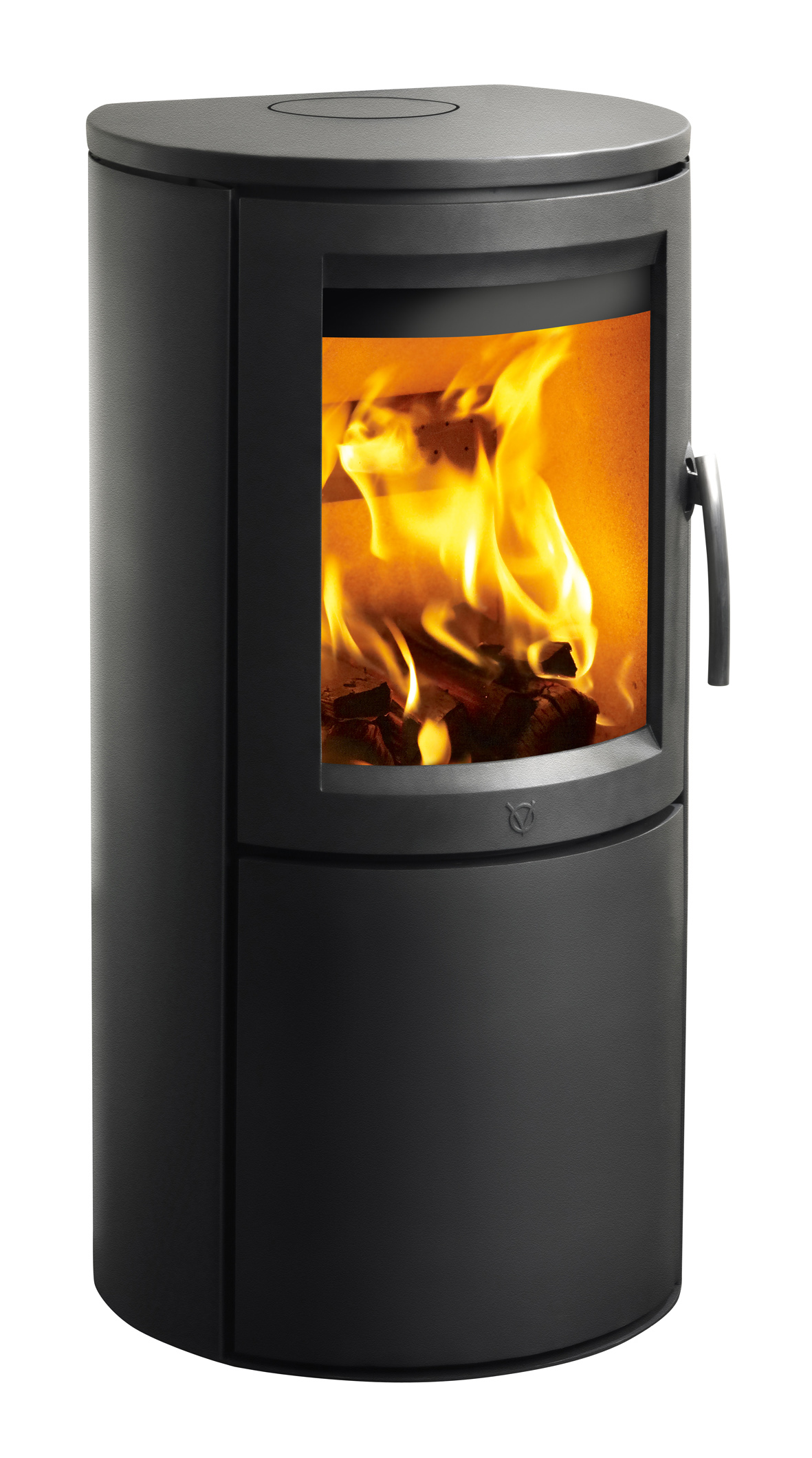 Дровяной камин Varde Aura 1 обладает изящными закругленными линиями и изогнутым самоочищающимся стеклом. Дополнительное удобство создают плавное закрытие дверцы топки и удобный нижний отсек для хранения дров. Воздух для основного горения и вторичного дожига газов всегда подается предварительно нагретым, что позволяет сократить теплопотери и продлевает срок службы чугунных частей топки. Чистое горение позволяет реже чистить дымоход; стекла и топочная камера камина всегда остаются чистыми.