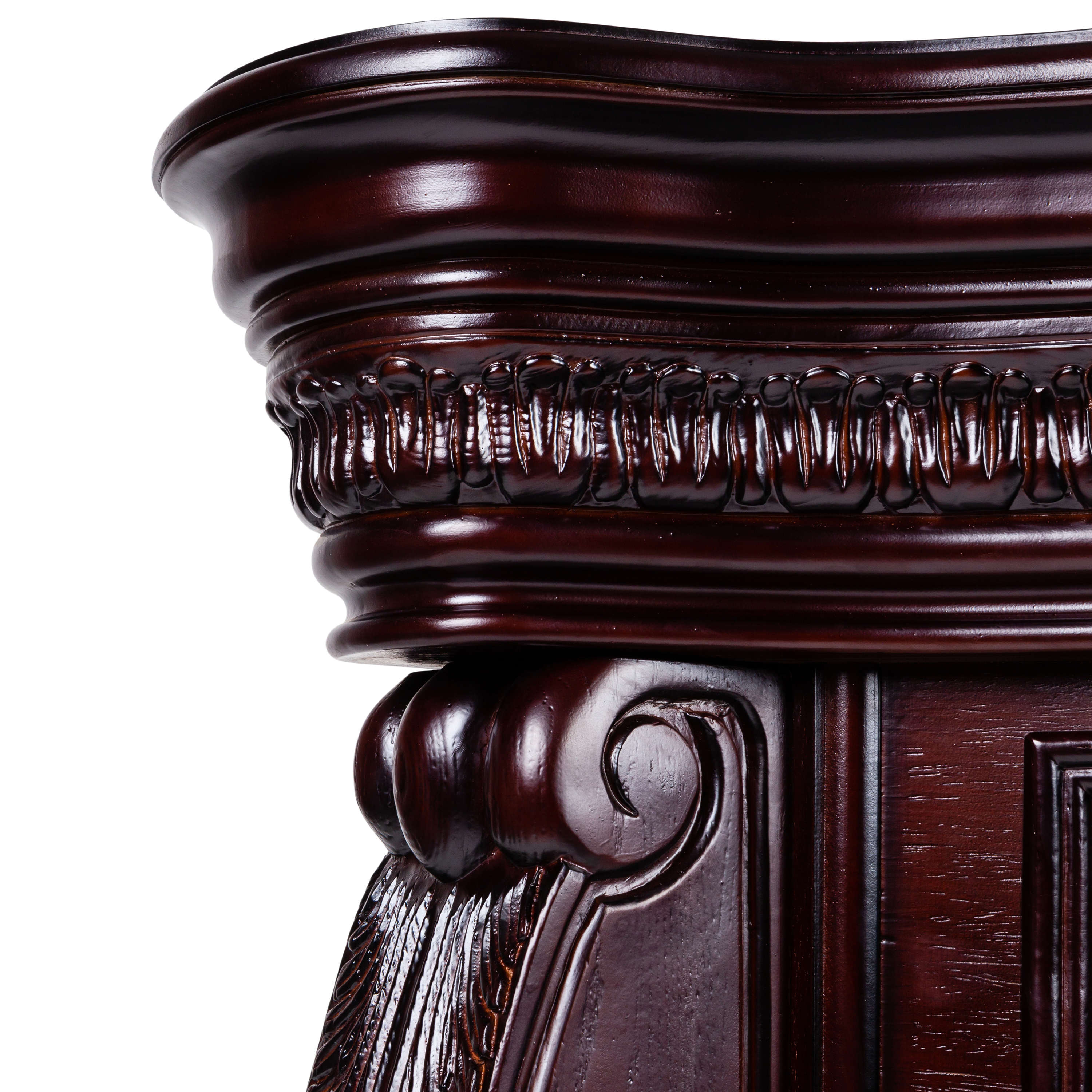 • Выполнен из качественного МДФ и тонированного шпона. Украшен резьбой по дереву и колоннами.