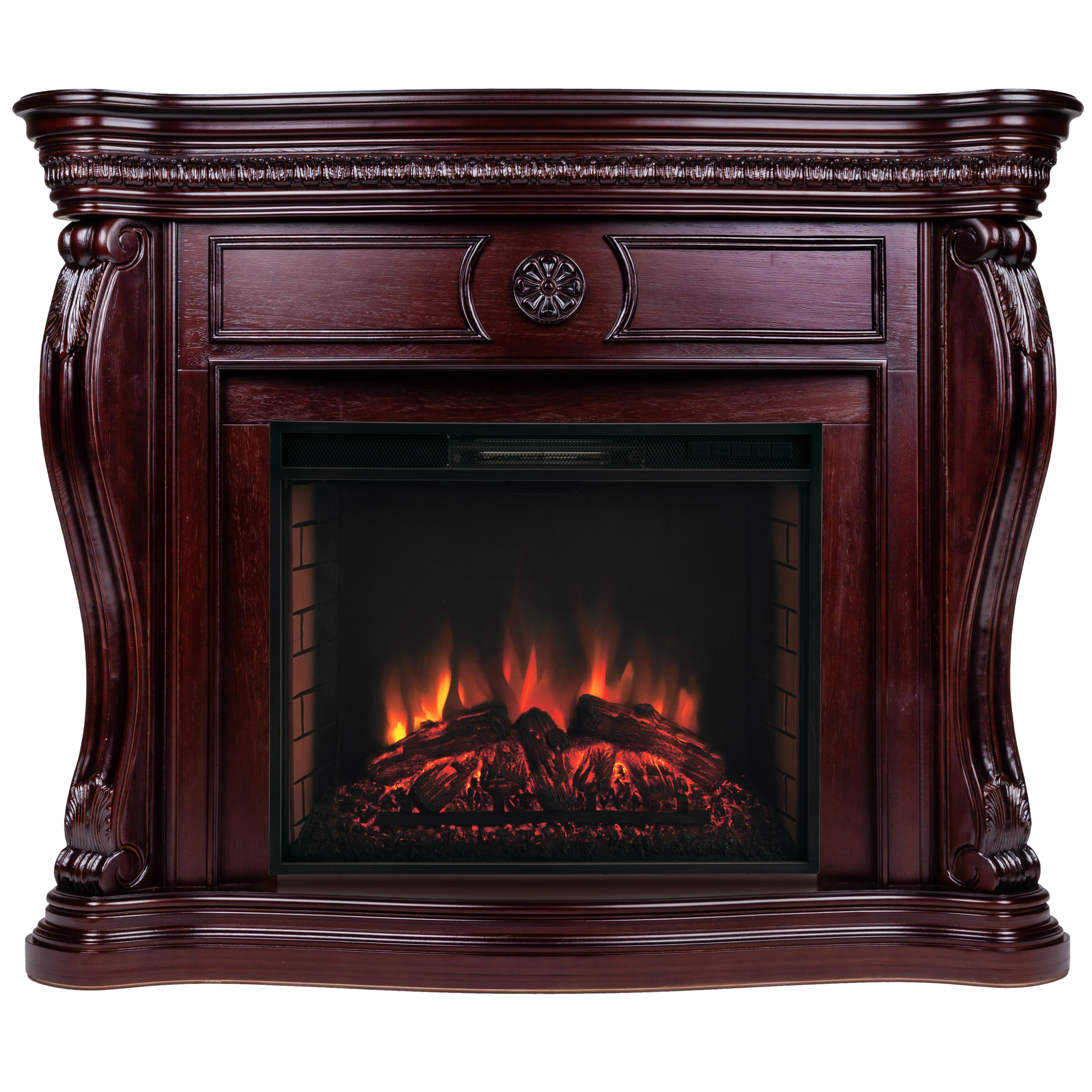 - Несколько уровней регулировки обогрева и яркости пламени, таймер отключения, защита от перегрева, пульт д/у, термостат, звуковой эффект потрескивания дров, LED лампы.