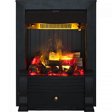 Вместо классических поленьев в очаге используется имитация тлеющих углей.