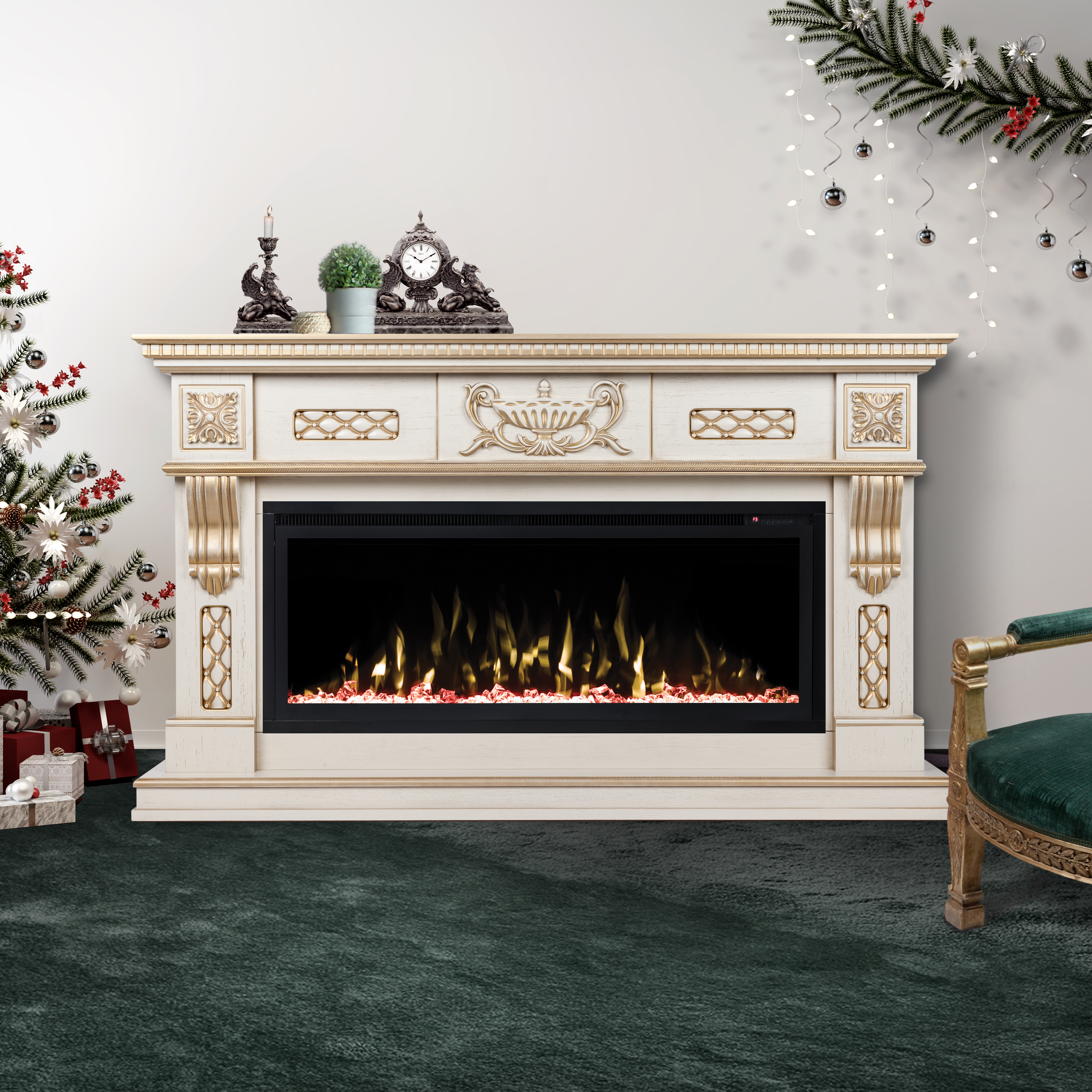 Каминокомплект RealFlame Corsica 42 WT очаг Saphir 42 изготавливается только из качественных материалов таких, как МДФ и шпон. А классические цвета портала прекрасно подчеркивают яркое пламя камина.