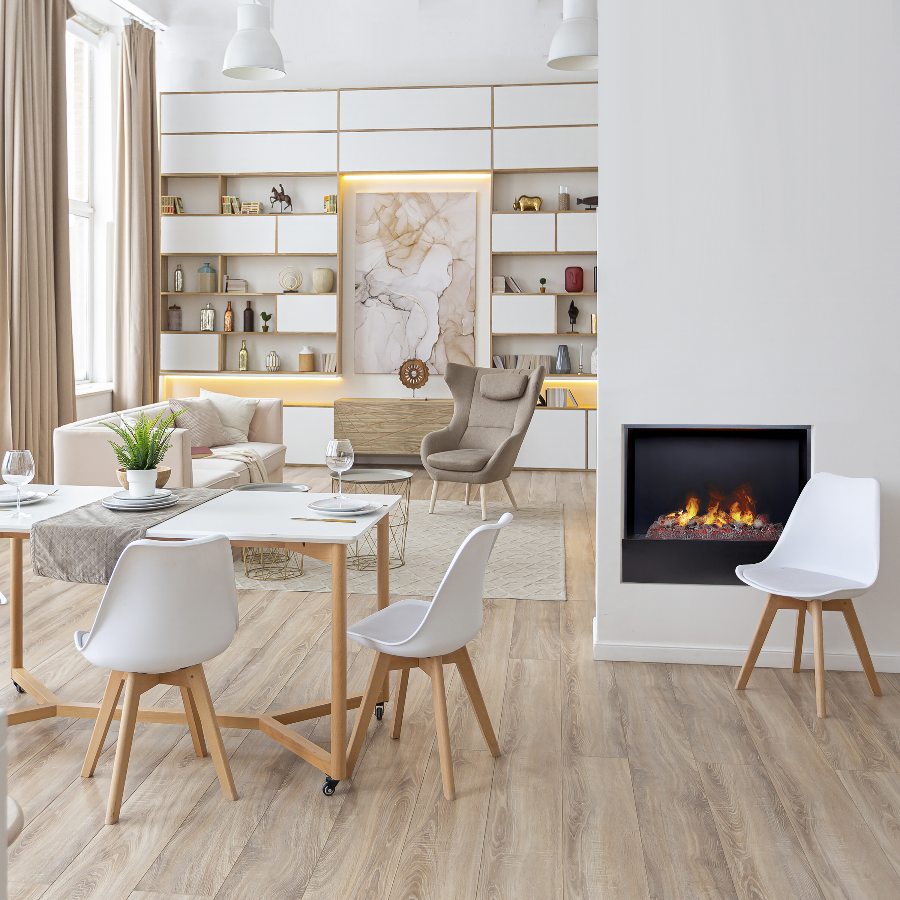 Полностью безопасен, даже для детей и животных. Нет никакого дыма и копоти, только вода. Паровые камины экологичны и удобны в квартире!