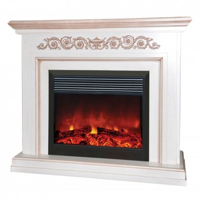 Большой, высокий портал Leticia 26 построен компанией Real-flame в стиле классических мебельных английских каминов. Портал камина изготовлен из МДФ с сохранением античных архитектурных пропорций и облицован натуральным шпоном белого дуба с коричневой патиной. В верхней части портала расположен узорчатый орнамент. Данный портал подходит под широкие очаги.