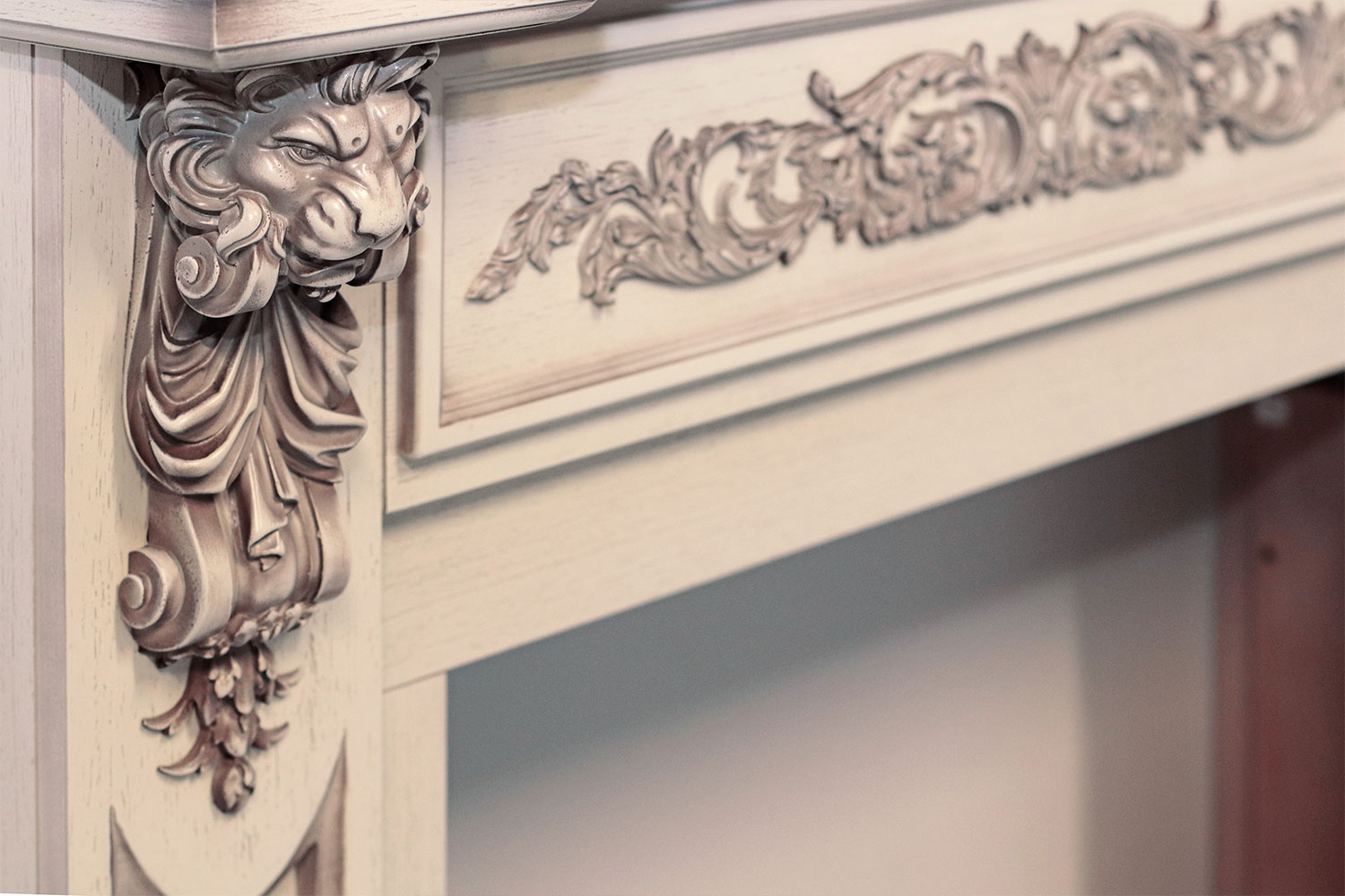 Портал Dimplex Lancaster исполнен в классическом стиле. Украшен в верхней части резным орнаментом и дополнен по бокам псевдоколоннами. Основание портала выполнено в виде высокого постамента, выступающего вперед, что акцентирует внимание на зоне очага с имитацией «живого» огня.