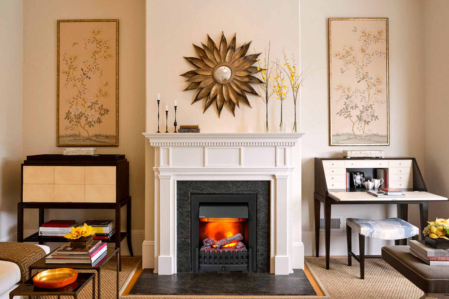 Благодаря электрическому камину в вашей квартире не только появляется «живое» пламя, но происходит и увлажнение воздуха в помещении. Очаг можно встроить в любой подходящий по размеру портал.