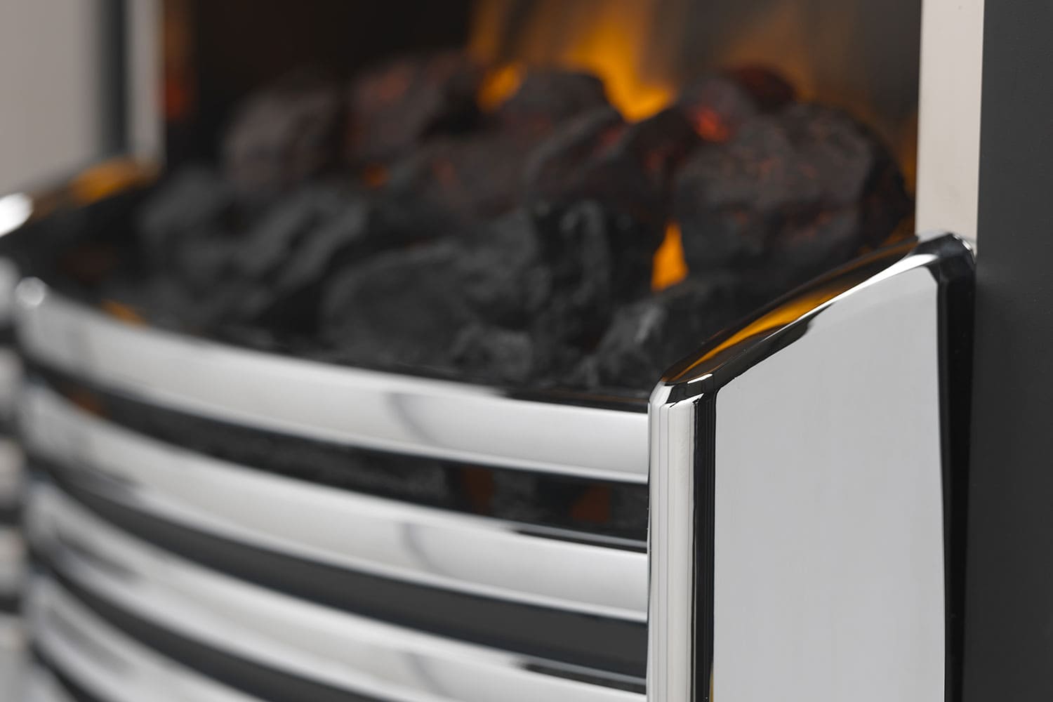Электрический очаг Dimplex Flagstaff — стильный очаг в блестящем серебристом обрамлении.