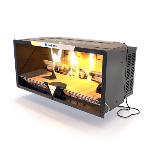 Для обеспечения оптимальных габаритов в случае углового монтажа предусматривается возможность изменения конфигурации топки FEUERBACH Type - 800. Конфигурация изменяется путем переноса модулей электроники/электрики с боковых стенок корпуса на заднюю стенку, обеспечивая максимальный диапазон дизайнерских решений. Таким образом доступны два варианта фронтальное и угловое исполнение данной модели.