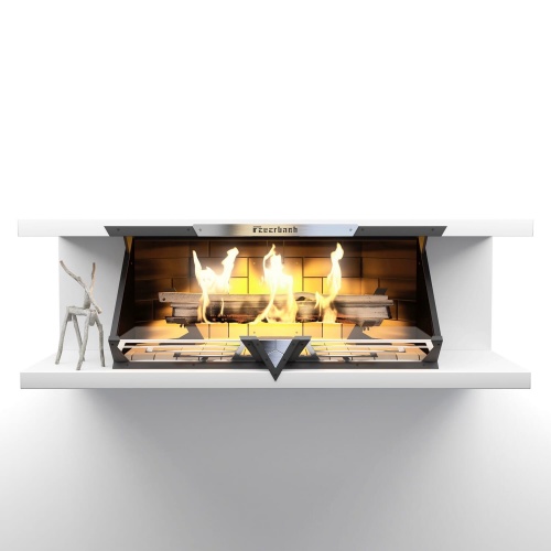 Габаритные размеры топки FEUERBACH Type 812 позволяют размещать устройство, как "консольно", так и в качестве стандартного модуля корпусной мебели (ШВГ 1200Х400Х38мм). Таким образом устройство не предполагает возведение или приобретение декоративного портала и может использоваться "из коробки". Декоративный несущий корпус позволяет значительно увеличить горизонтальные углы обзора.