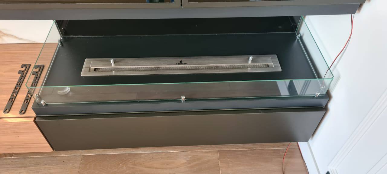 Менеджер проконсультировал по всем вопросам эксплуатации биокамина и помог подобрать нужную модель. Подготовили чертежи и приступили к работе. Установили Firezo Estremita с полным комплектом стекол.