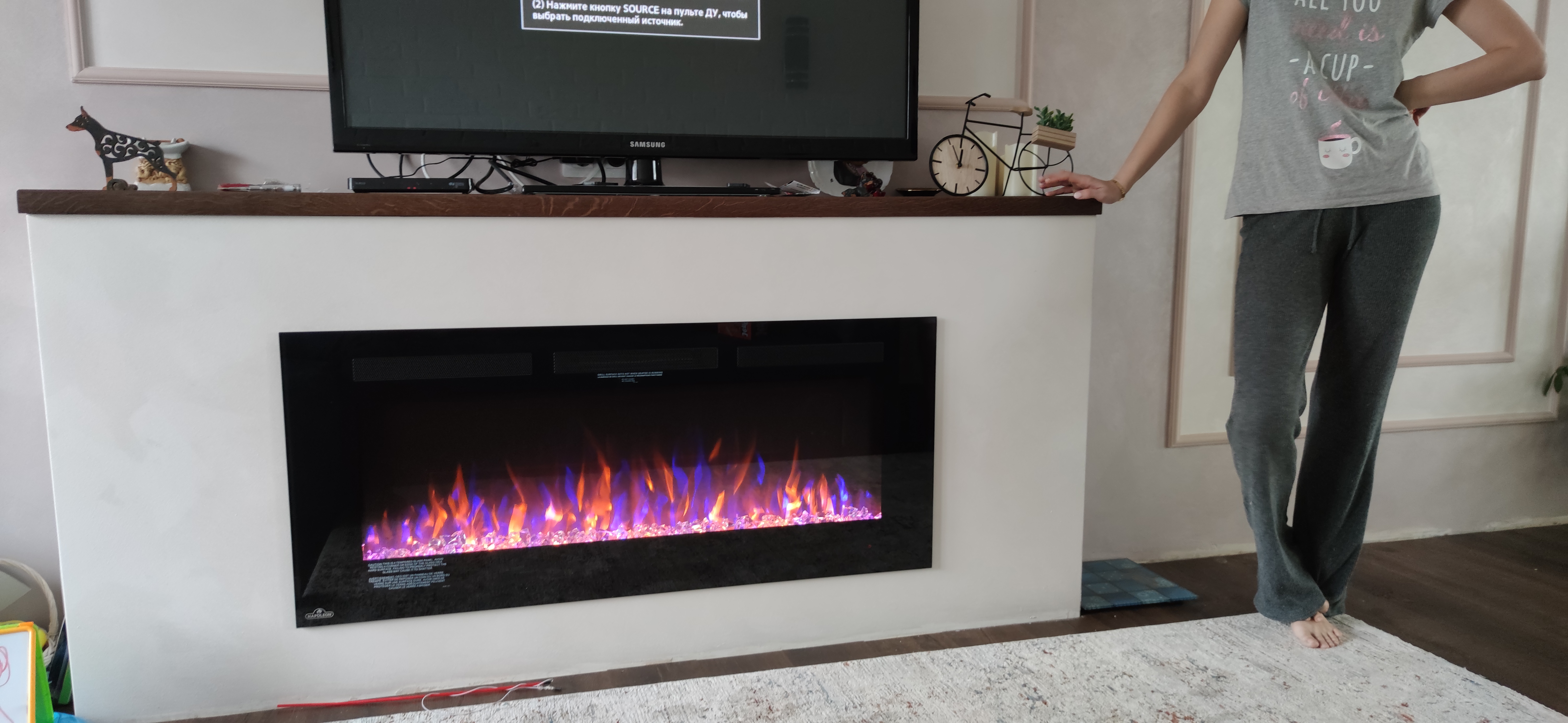 Установили лед электро камин Napoleon в нишу из гипсокартона. Ниша была сделана с полкой для установки телевизора. Электрокамины Napoleon самые популярные камины нашего магазина.