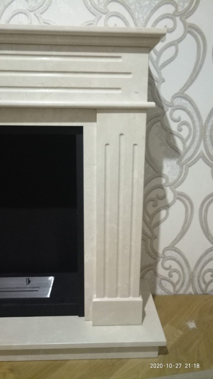 Биокамин с порталом Варшава. Выполнено по индивидуальному заказу. Портал Варшава отличает стильный дизайн, который можно использовать как в современных, так и в классических интерьерах. Для покраски применяется технология порошкового окрашивания, что гарантирует долговечность камина. Не требует дымохода, а при сгорании биотоплива не выделяется дым, запах, газы и вредные соединения. Очаг Firezo изготовлен из нержавеющей стали, выдерживающей высокотемпературный нагрев. Абсолютная безопасность эксплуатации. Модель мрамор CREMA MARFIL. Размер 122,5х101,3х32,3 см.